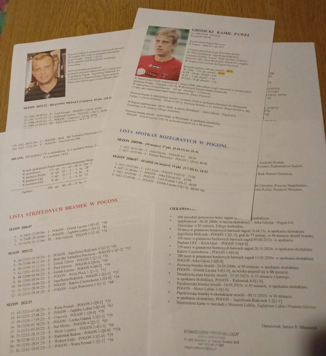 Jubileuszowy 200. mecz Grosik rozegrał – w niedzielę 16 lutego 2026 w spotkaniu ligowym z Arką Gdynia 1-0[0-0].